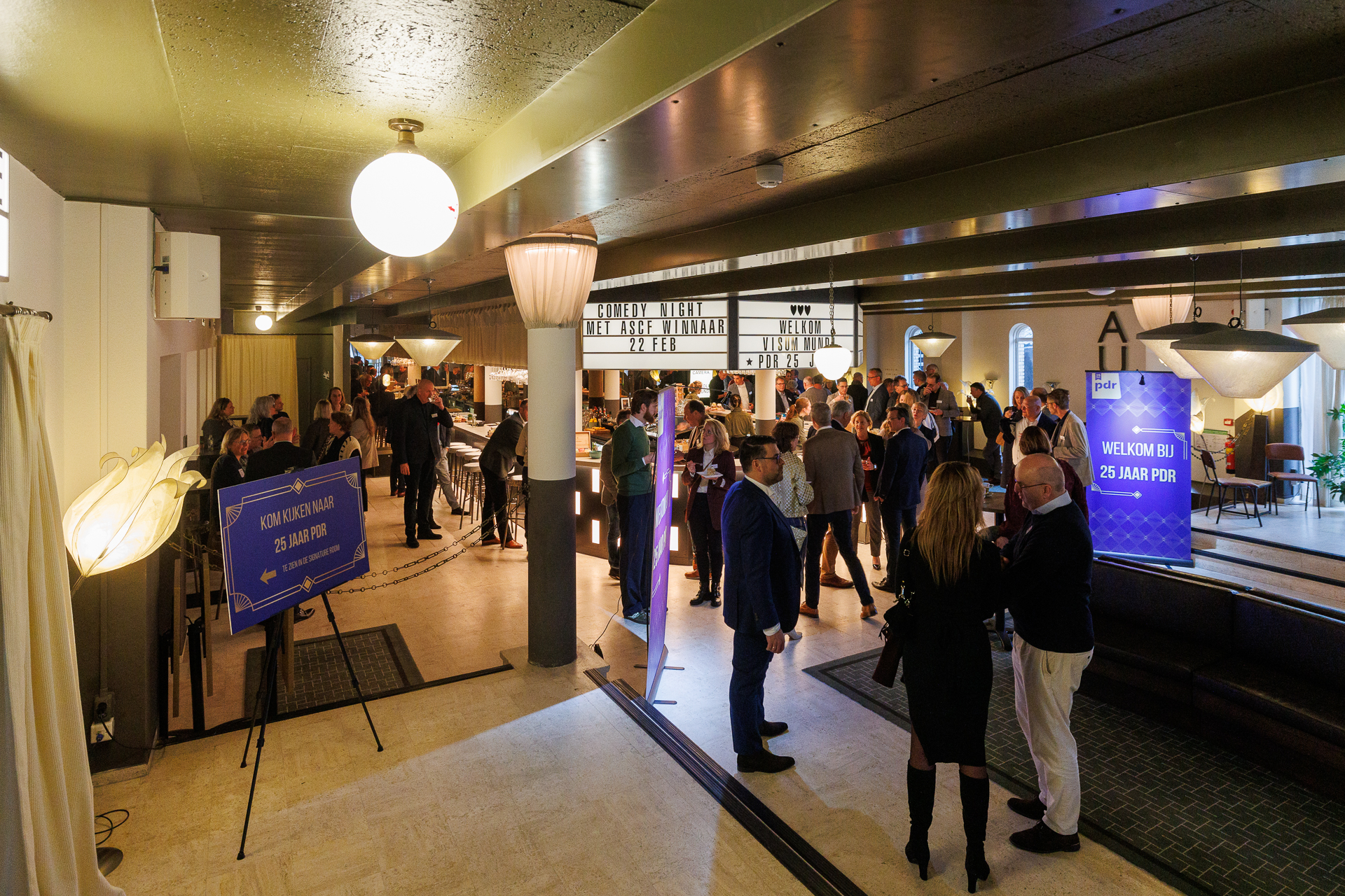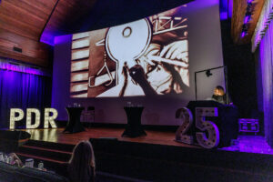Tijdens ons jubileum-event op 11 februari ontvingen we onze relaties in het art-deco paleis van de Foodvalley-regio: Visum Mundi, de voormalige aula van de Wageningen Universiteit. Met keynotes van Christianne van der Wal, Guido Rijnja en Wicha Benus. Een prachtig walking diner van Hotel de Wereld en de zandkunstenaar. Uiteraard was er volop gelegenheid om te netwerken. Zo vierden we samen het communicatie-vak en toostten we op de toekomst van PDR en elkaar. Foto-credits voor Casper Korver.